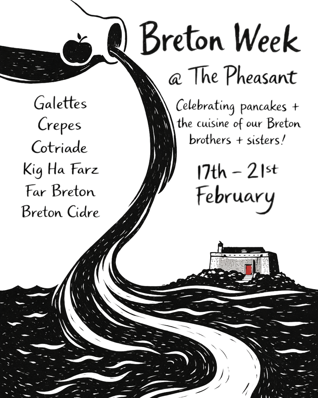 Cornwall and Brittany share deep, centuries-old connections hailing back to Celtic times and are linked by language, migration, geography and food. The produce of Brittany is very similar to Cornwall - with seafood, dairy and apples at the forefront. We have written a menu full of Breton specialities which we will be cooking from Tuesday 17th through to Saturday 21st, think galettes - savoury buckwheat pancakes, Cotriade - the fish stew of Brittany, Kig Ha Farz - a rustic dish of braised meat and cabbage, Far Breton - the eponymous baked custard and prune dessert.